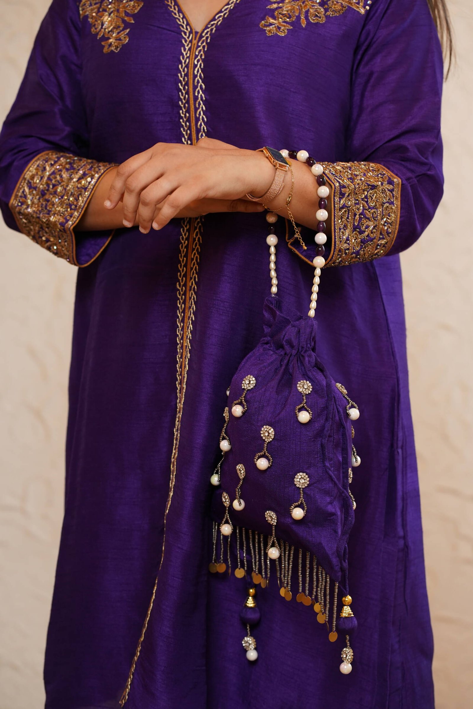 Crafted in flowy chiffon fabric for both the top and palazzo, this outfit exudes effortless elegance. The rich royal purple hue is enhanced with delicate hand embroidery, adding a touch of sophistication. With a delivery time of 7–12 days, it’s a perfect pick for festive gatherings and special occasions.